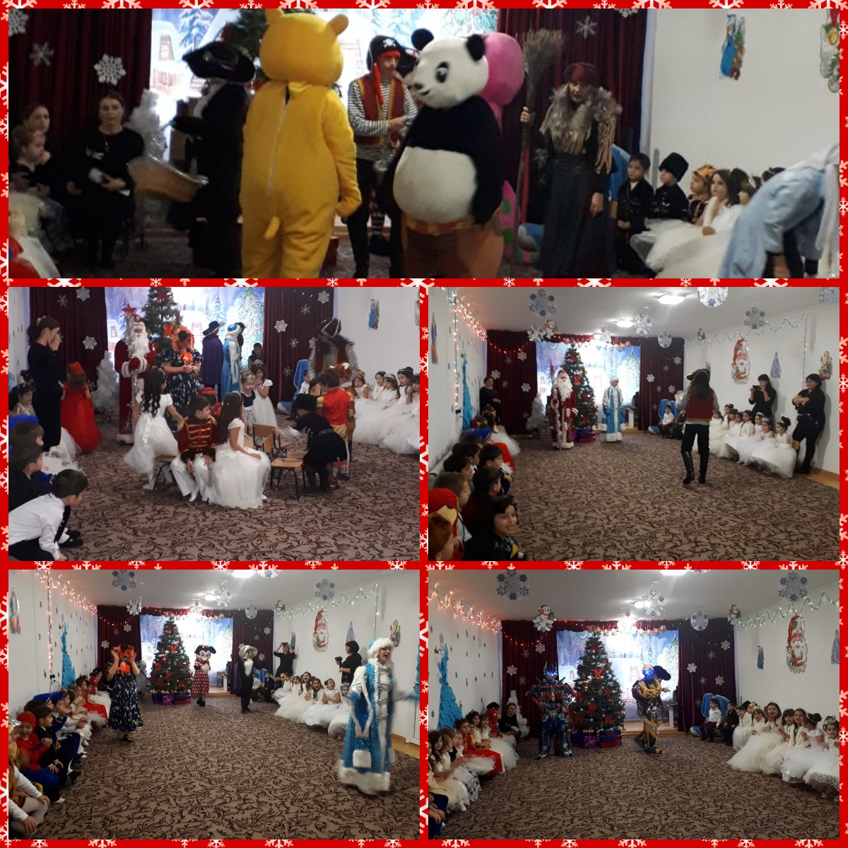 С появлением Деда Мороза начался настоящий праздник с песнями и танцами, хороводами вокруг ёлки. После представления дети читали стихи Деду Морозу и Снегурочке, фотографировались с персонажами, получали новогодние подарки.